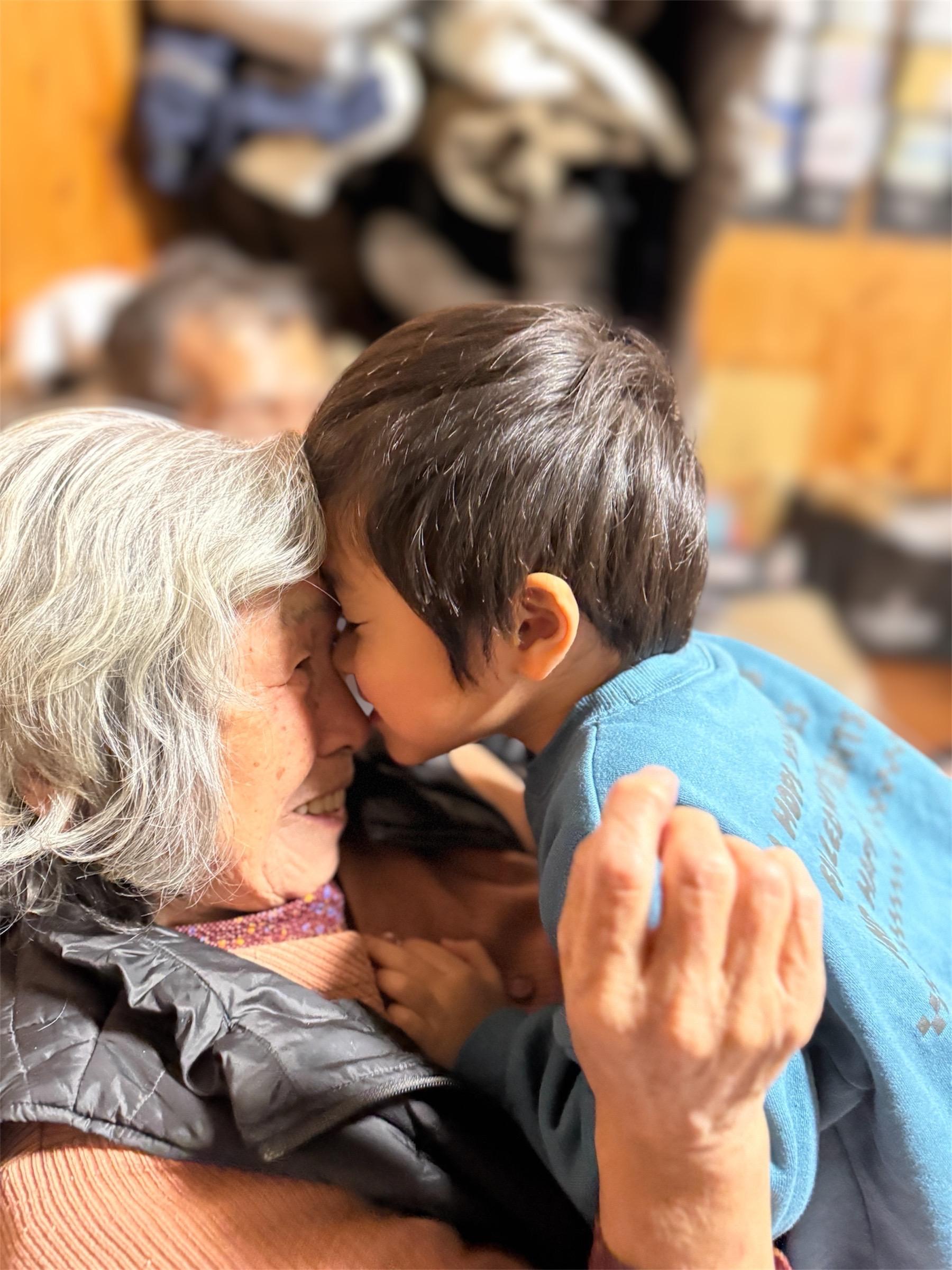 年末に退院をしてきたひぃばぁちゃんに会えて大喜びの息子を撮影しました。「 ひぃおばぁちゃん、だいすき!」と言って顔をくっつける姿がとてもかわいかったです。